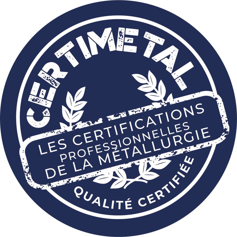 CERTIMETAL est une certification de la branche de la métallurgie nous permettant d'animer des évaluations et formations menant à une certification de la branche.